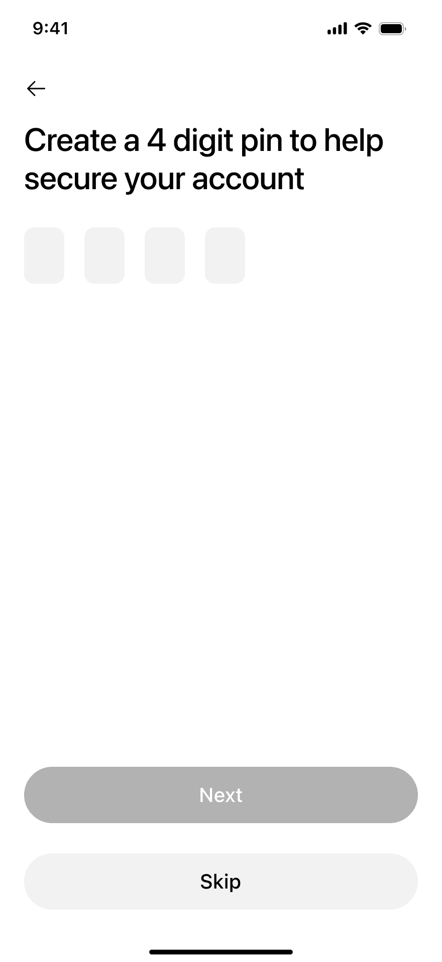 PIN setup
