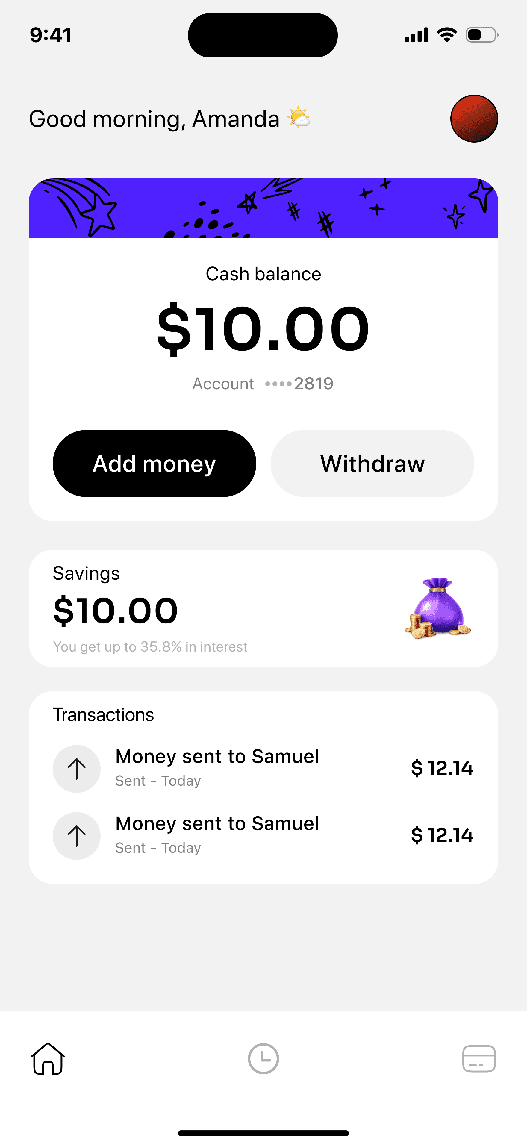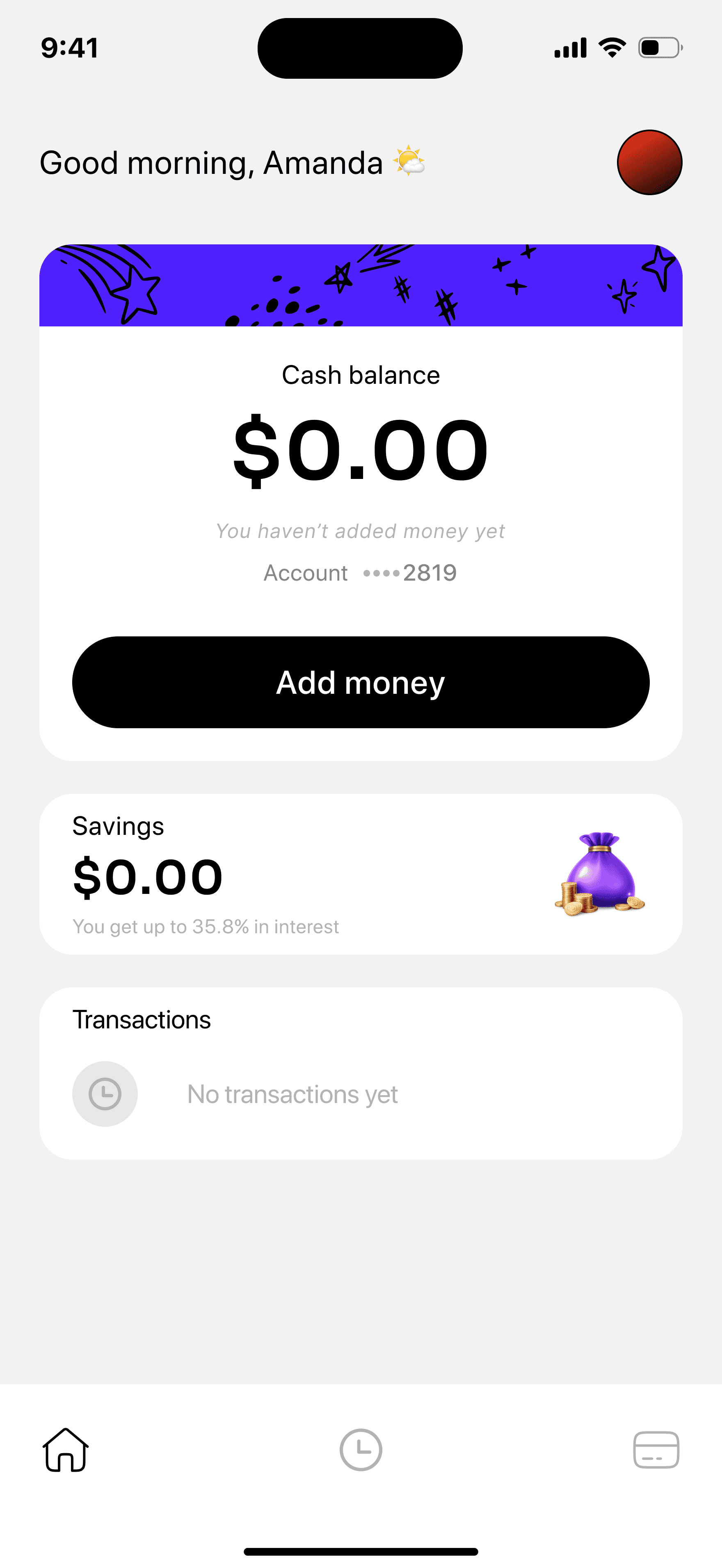 Only one primary action above the fold: Add Money