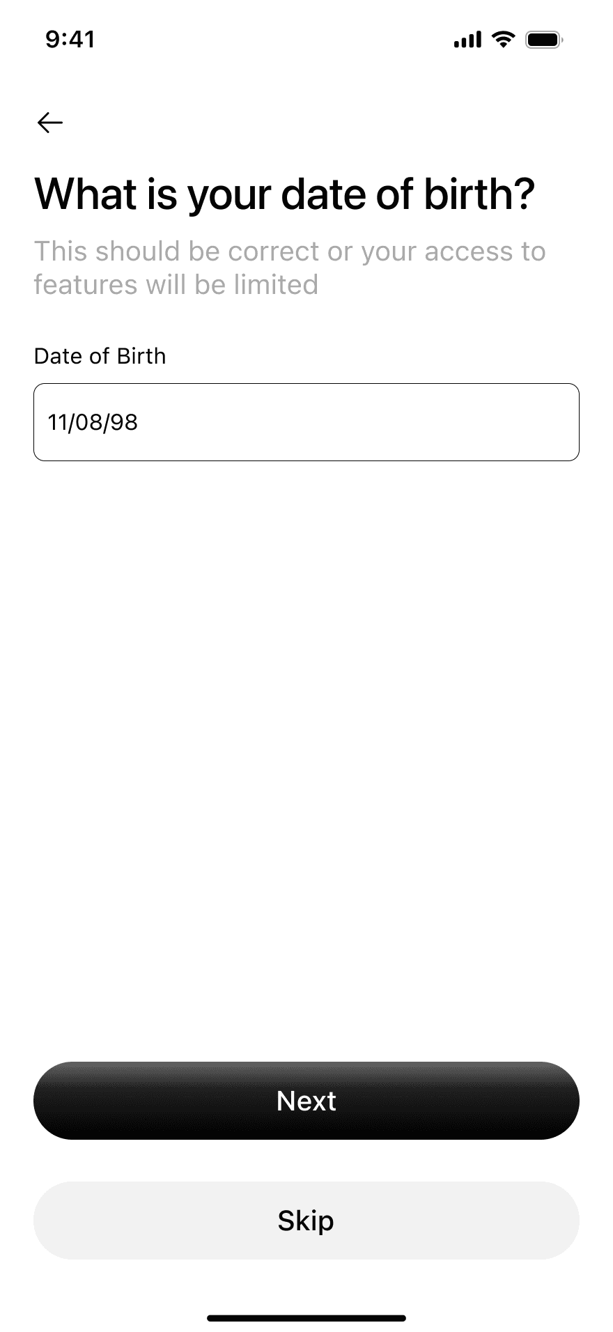 Instead of asking for everything at once, the flow is deliberately sequenced into three psychological phases: